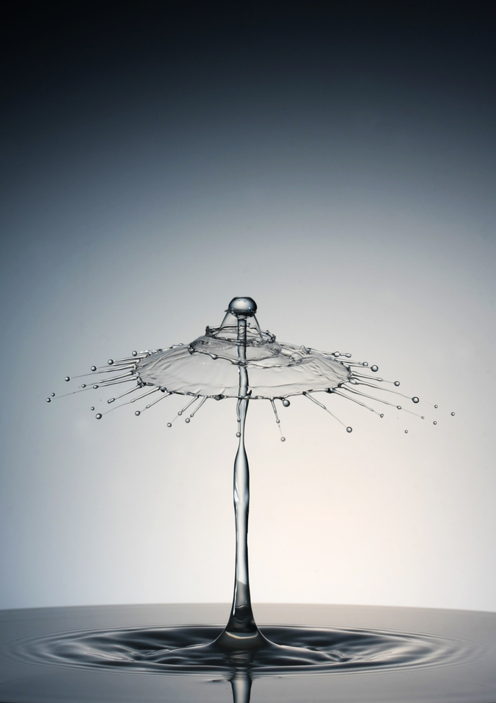 Ein weiteres Tropfenfoto unter Verwendung eines StopShots. Tropfflüssigkeit war leicht verdicktes Wasser.