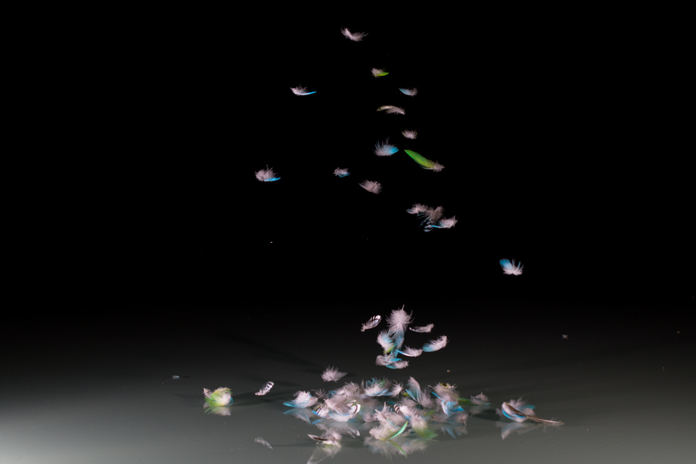 Obwohl leicht, fallen Federn für ein Foto doch schnell.
