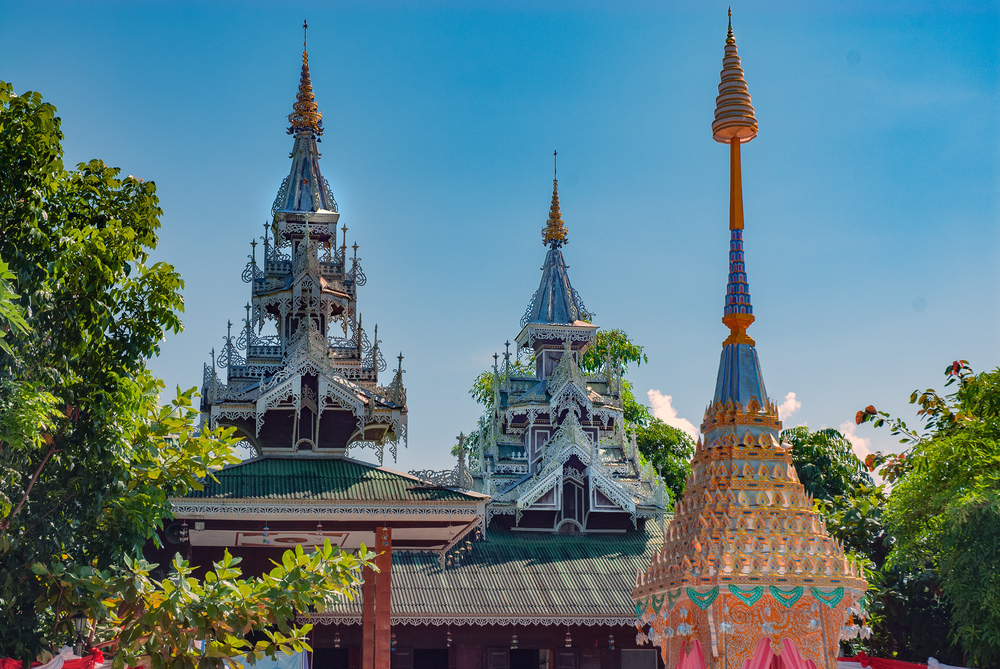Zwei benachbarte birmanisch-shanische Tempel, Wat Jong Sung und Wat Si Bunruang, liegen direkt an der Hauptstraße von Mae Sariang und sind auf jeden Fall einen Besuch wert. Es wurde 1896 erbaut und verfügt über schlanke Chedi- und Holzklostergebäude im Shan-Stil.