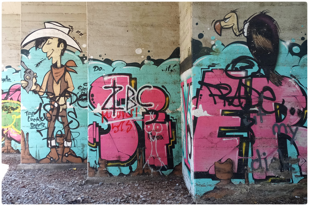 Graffiti an einer ehemaligen Eisenbahnbrücke