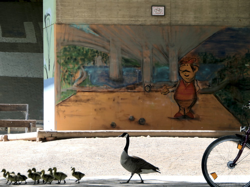 Hallo Rosa! Bei diesem Bild bin ich hängengeblieben. Das ist ja eine tolle Kombination. Die Gänsemutter mit ihren Kleinen, das Fahrrad dahinter und das Schildchen"Fahrrad fahren verboten". Ich finde das Bild ganz toll! Viele Grüße Heinz.