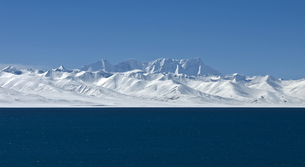der Namstosee im Hochland von Tibet ist mit 4.800m der höchstgelegene Salzsee in einer von hohen Bergen umgebenen Landschaft. Kälte und Lichtverhältnisse trugen zu einer Stimmung bei, die das Bild auch ausdrückt.
