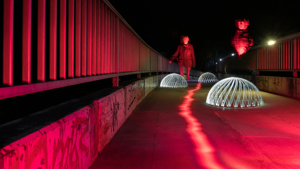 Etwas Buntes zum Osterfest. Die „Eier“ gefunden auf einer Fußgängerbrücke, mit Hilfe von Fotofreund Sebastian als Beleuchter.