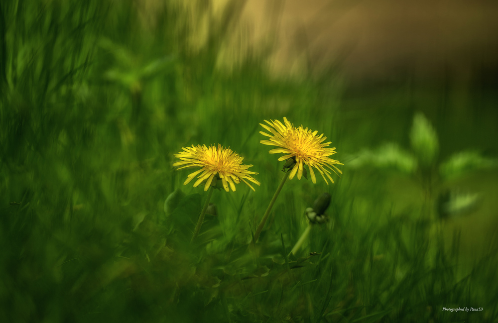 Der Löwenzahn ist ein König auf der saftigen, grünen Frühlingswiesen. Das Paar leuchtet im Grün und ist ein schöner Hingucker. Viele Grüße Nora