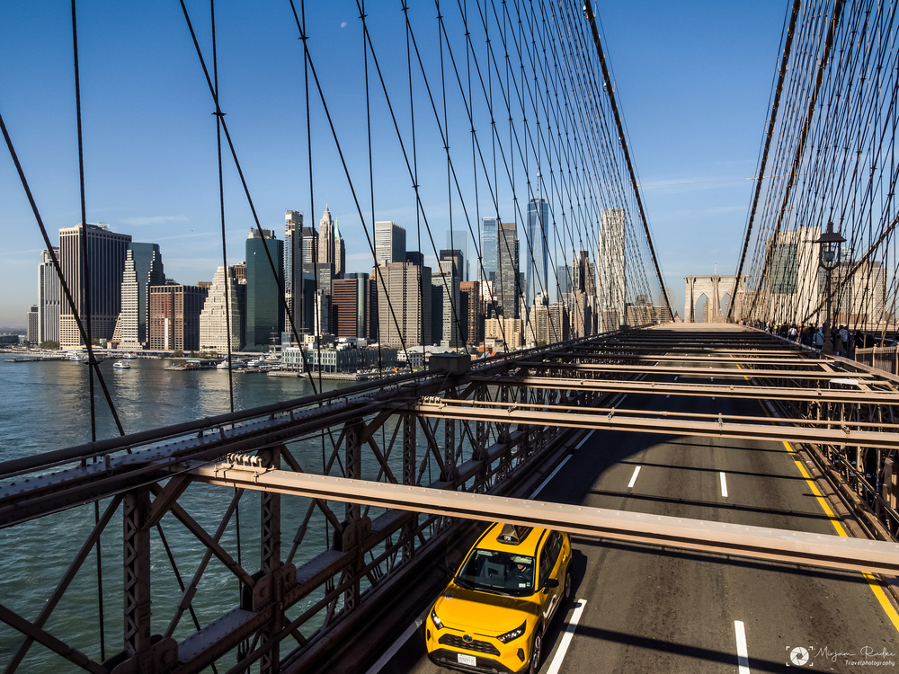 Gelbes Taxi, Manhattan Skyline, BrooklynBridge.