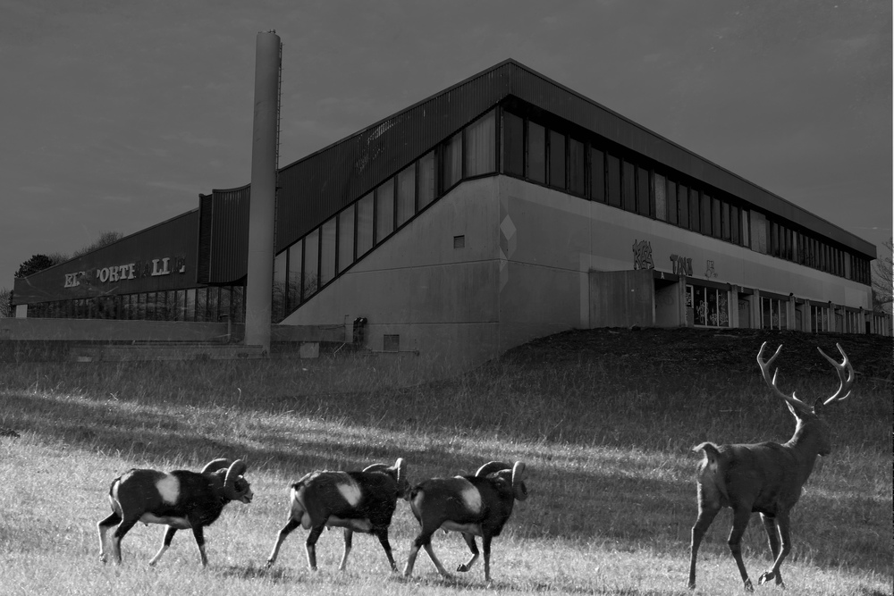Die Eissporthalle in Unna wird abgerissen. Dann soll wieder die Natur einziehen mit einer eingesäten Blumenwiese.... wahrscheinlich für ein knappes Jahr, vielleichtauch zwei ... und dann wird das Gelände bebaut, wahrscheinlich mit Wohnungen..... diese Naturzwischenzeit habe ich mit meinem Composing dargestellt ....