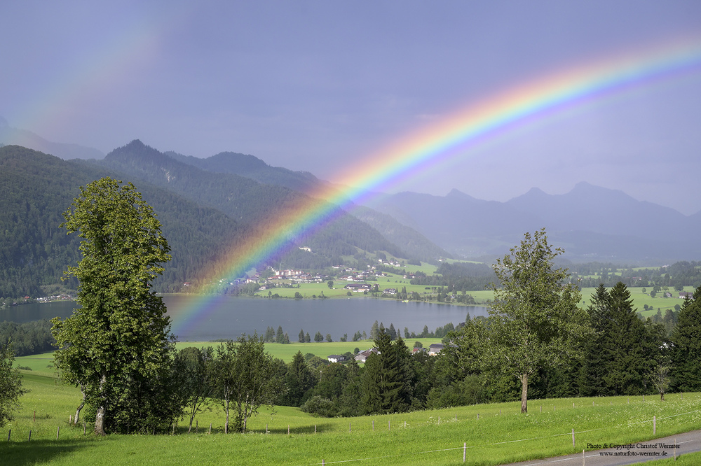Ein Bild vom Walchsee möche ich noch zeigen. Dieser Regenbogen über dem See brauchte einige Zeit, aber dann leuchtete er unglaublich kräftig.