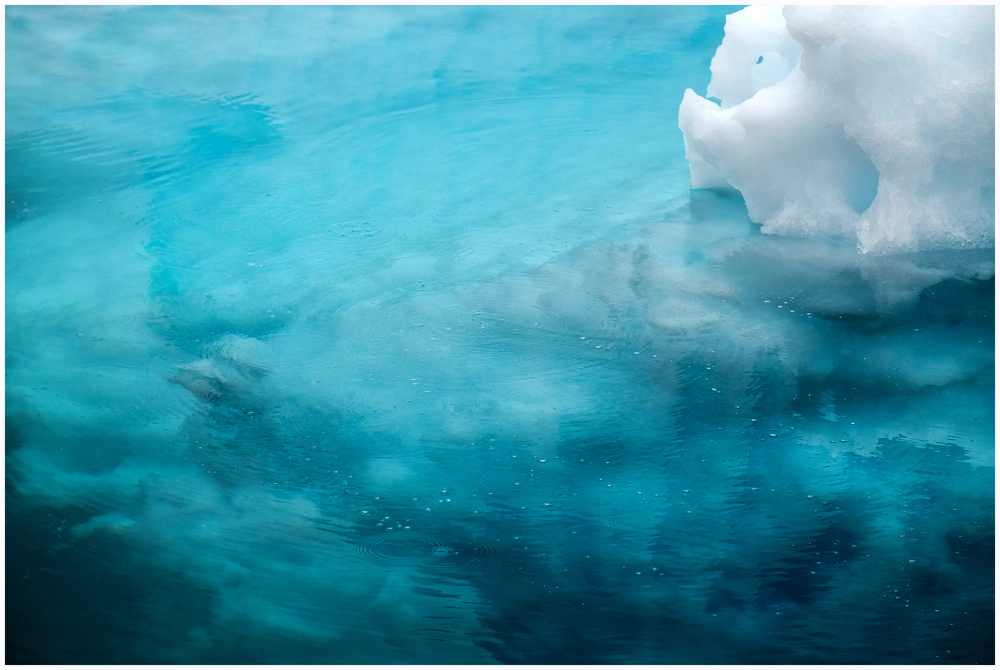 @Krystina, Petra, Anne, Wolfhart und Eberhard – ich habe sogar kurz noch überlegt, ob ich nur diesen Teil der Unterwasserwelt zeige ohne das Eis darüber, so es noch mehr in die Abstraktion ginge. Das hätte mir gut gefallen. Und ja, dieser Vergleich mit einem Gemälde des Impressionismus kam mir dann auch. (Deshalb mag ich Spiegelungen auf dem Wasser besonders von Farben.) Aber hier kam es mir doch darauf an, den Bezug zum Eis über dem Wasser, wenigstens am Rande, herzustellen. Die Farben sind tatsächlich so gewesen. Reste des Eisberges unter Wasser zusammen mit diesem geben dann diesem Teil des Bildes den türkisfarbenen Ton.