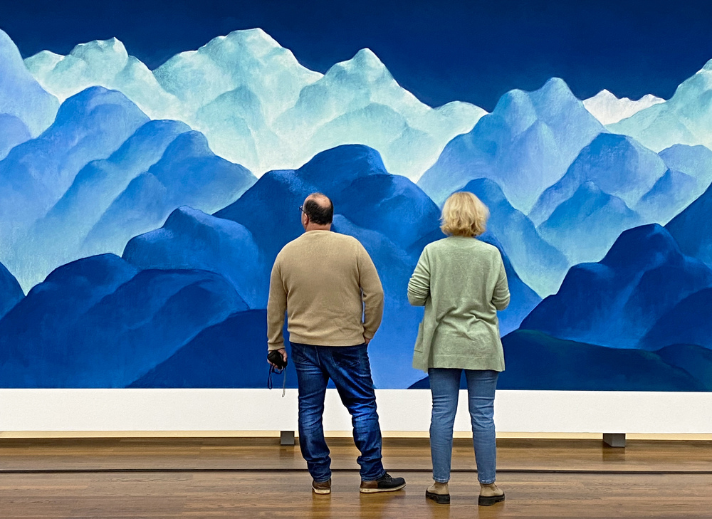 18.03.2024... gut gesehen und gut gestaltetes Bild: man kann es nicht anders sagen, die beiden sind passend zum angeschauten Bild und zum Raum/Fußboden gekleidet. Wie konnten sie das wissen? - ;-)