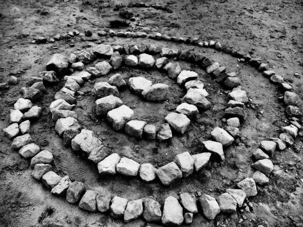 Deine Steinspirale hier wird nicht aus Urzeiten stammen (?), aber hat ganz sicher für denjenigen oder diejenigen, die sie gestalteten auch eine spirituelle Bedeutung - der Kraft gebenden, Energie aus der Erde über den Stein empfangen. Die Spirale, die sich aus einem Zentrum heraus in Rundungen anordnet transportiert diese Kraft und Energie - so meine Interpretation. Vielleicht ein von Krankheit Gezeichneter, der hofft mit diesem Ritual symbolisch "die Spirale aus der Krankheit" zu durchbrechen ...