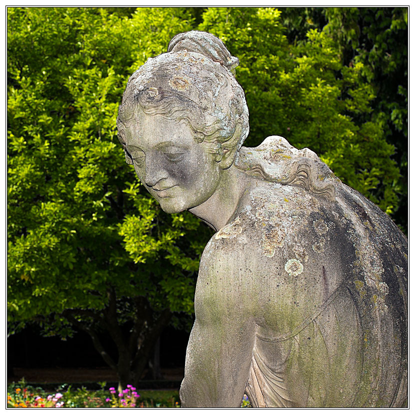 Der Kopf etwas geneigt, die Augen auf den Boden gerichtet. Sie scheint zu träumen. Das ist eine stimmungsvolle Aufnahme von dieser Skulptur. Gruß Michael