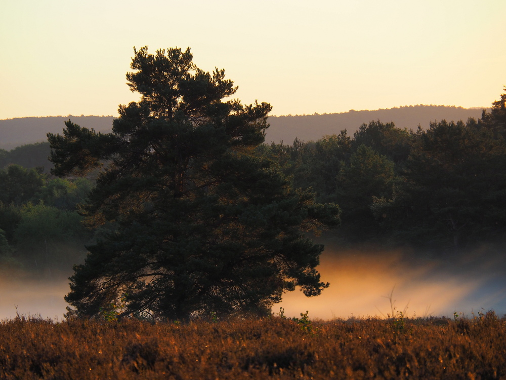 26.09.2025Wundervoll. Das Heidekraut erstrahlt jetzt in Herbsttönen. Der Hingucker ist aber der imposante Nadelbaum, der in der Mulde aus Licht steht. Die vielen Lichtreflexe der aufgehenden Sonne auf Baum und Wald betonen den Zauber.
