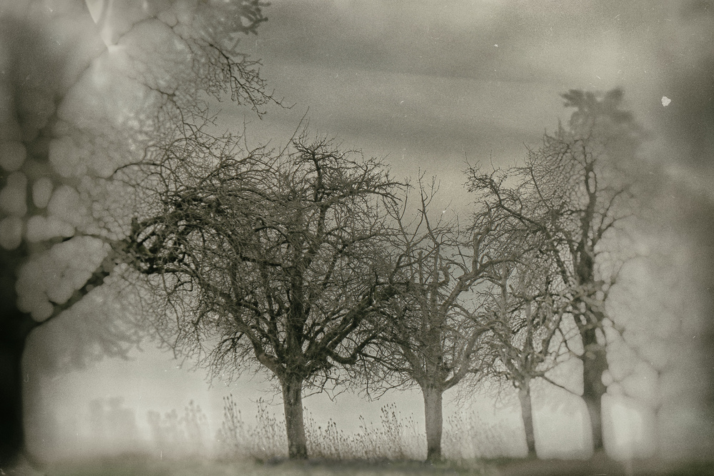 Jetzt beginnt die Jahreszeit, wo man den individuellen Charakter der einzelnen Bäume gut erkennen kann. Durch deine ausgeprägte Vignette konzentriert sich der Blick auf die beiden Hauptprotagonisten ... die nostalgische Bearbeitung passt bestens zum Motiv und zur Jahreszeit.