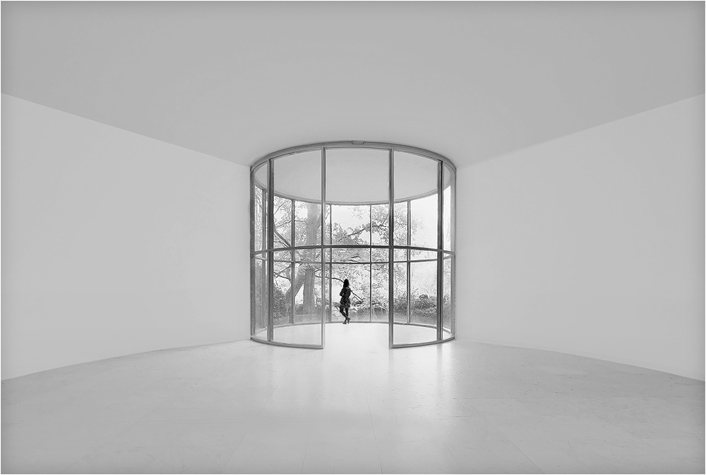 Ruhe ist auch mein erster Eindruck von diesem Bild. Die Leere des Raumes und die 'Insel der Ruhe' im Zentrum des Bildes wirken harmonisch zusammen. Die leicht geschwungenen Linien von Decke und Wänden führen in die Bildmitte, zum Aussichtspunkt. Dezente und helle SW-Töne bestimmen das Bild mit einer Ausnahme: Die einzige Person im Bild fällt eher S als W markant ins Auge. Sehr schöne Aufnahme.