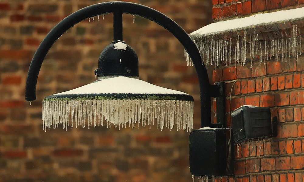 Aber diese Hoflampe wurde von Eiszapfen aufgehübscht, trotzdem oder gerade deswegen sehr sehens- und fotografierwert..., oder?