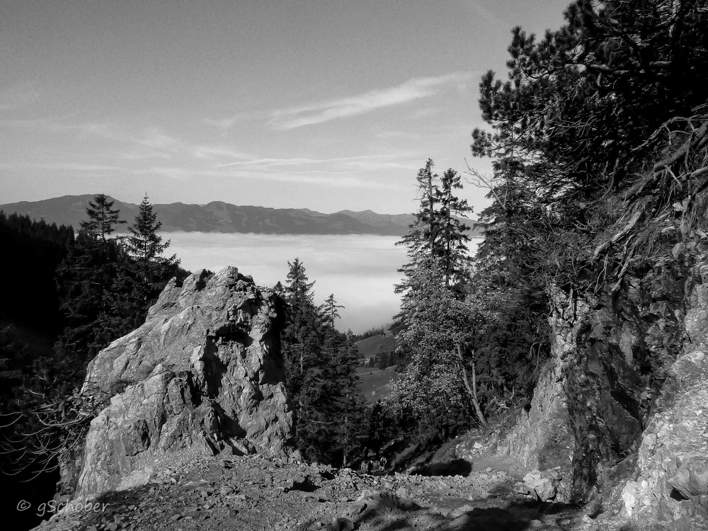 23.05.2015Der Nebel, aus dem sich die Berge erheben, wirkt fast wie ein See.