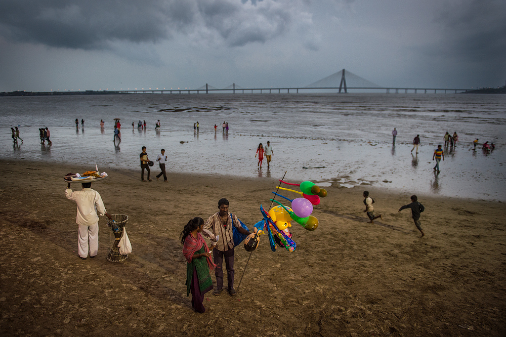 Während unserer Fotoreise in Indien waren wir u.a. beim Ganesha-Festival in Mumbai (Ganesha ist der hinduistische Gott mit dem Elefantenkopf). Teil dieses Festes ist es, dass die Menschen ihre Ganesha-Figuren abends im Meer versenken. Einer der beliebtesten Strände für die Menschen in Mumbai ist dieser hier. Das Wetter war "monsun-artig", es regnete zwischendurch immer mal und der Strand war teilweise mit Scheinwerfern beleuchtet. Dadurch entstand diese leicht surreale Stimmung, die mir sehr gut gefallen hat ...
