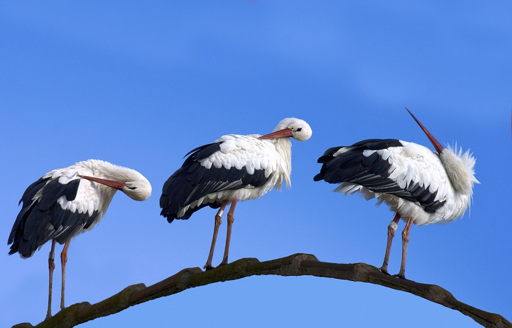 Störche auf dem Catwalk putzen sich noch schnell raus, bevor sie vor Heidi antreten müssen. Aber falls sie nicht weiterkommen, haben sie ja noch ein Bild von dir;-) Eine schöne Aufnahme.