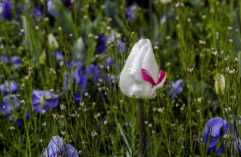 Edel die Zeichnung und stilvoll der Tropfenschmuck dieser weißen Tulpenschönheit...eine wunderbare Naturaufnahme in ganz feiner Qualität.