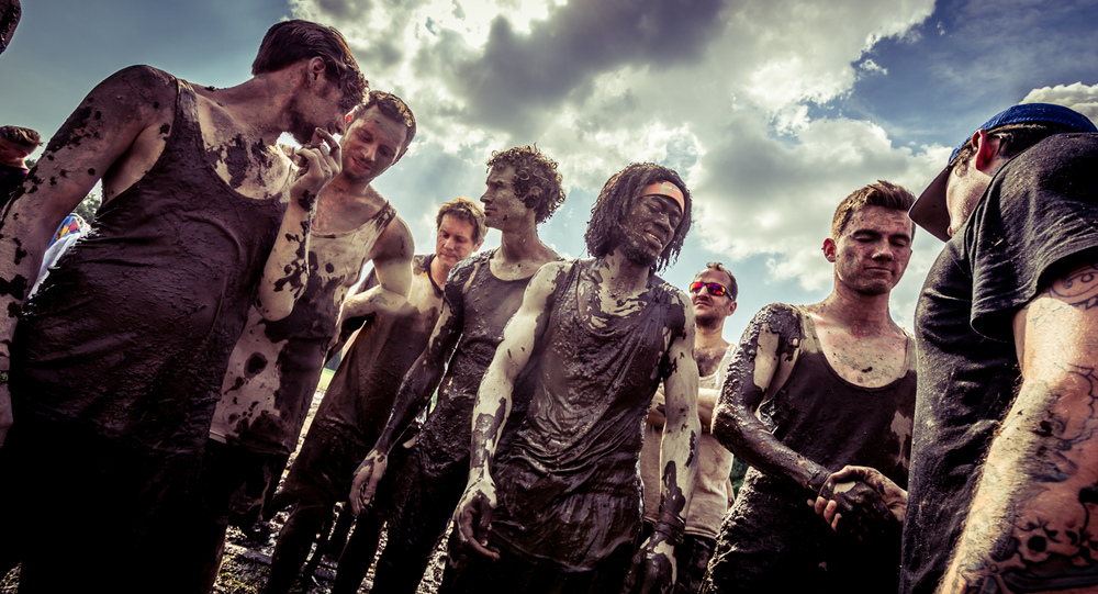 Handshake nach einem Spiel während der Moorfussballmeisterschaft am 05. Juni 2016 im Lembrüch.