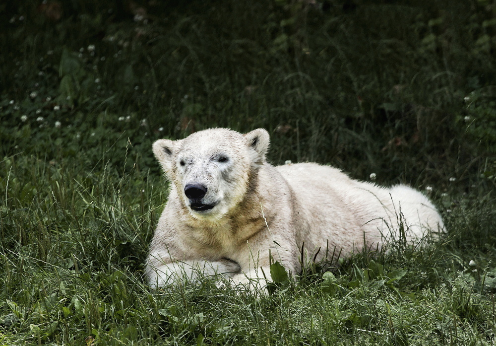 09.07.2016ein eisbaer im gruenen gibt es auch nicht alle tage , suess ist er ja :-)