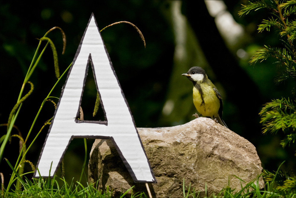 nein kein Composing; hinten am Stein ist die "Futterquelle" angebracht. Natürlich brauchte es mehrere Aufnahmen, aber sie hier war die einzige, die so wunderschön auf das A geschaut hat und damit das "Casting" für sich entschied.