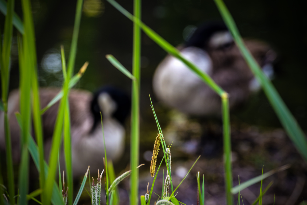 03.05.2017Ja so geht es mir auch oft..., die Schärfe liegt gewollt oder ungewollt auf dem Schilf oder Gras im VG, aber man erkennt die Kanadagänse noch im HG.
