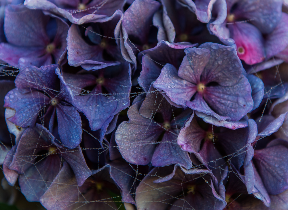 Sehr gut gesehen lieber Helmut. Der Tau macht die klevere Strategie der Spinnen sichtbar. Das Netz vor den Blüten der Hortensie sichert die Mahlzeit.