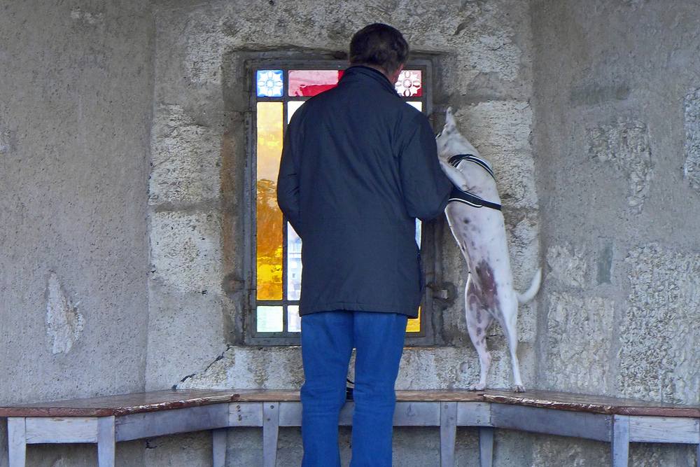 Hier scheint Zora die "Neugier" des Herrchens zu teilen ... und sie scheinen nicht nur schöne Aussichten, sondern auch bunte Aussichten zu haben ...
