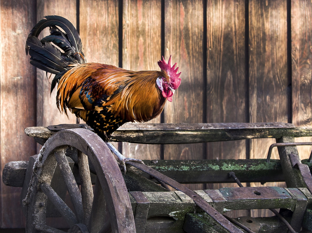 Hühnerställe mit Hahn sind eher selten geworden und er scheint auch noch freilaufen zu dürfen. Ein Prachtexemplar und scharf abgelichtet.. LG jutta