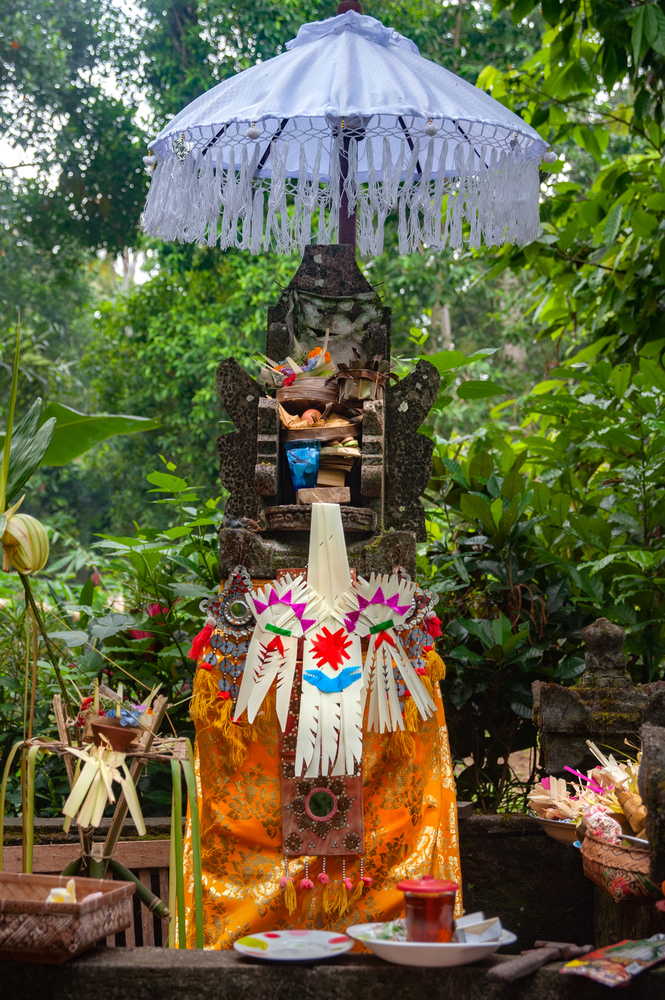 Während der Feier des Pagawasi Festivals bringen die Anbeter ihre Opfergaben zum Tempel (Pura) im Dschungel in der Nähe des Dorfes Sembung.