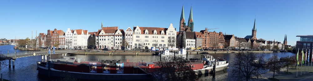 „Panoramablick über die Altstadt-Trave, Lübeck“
