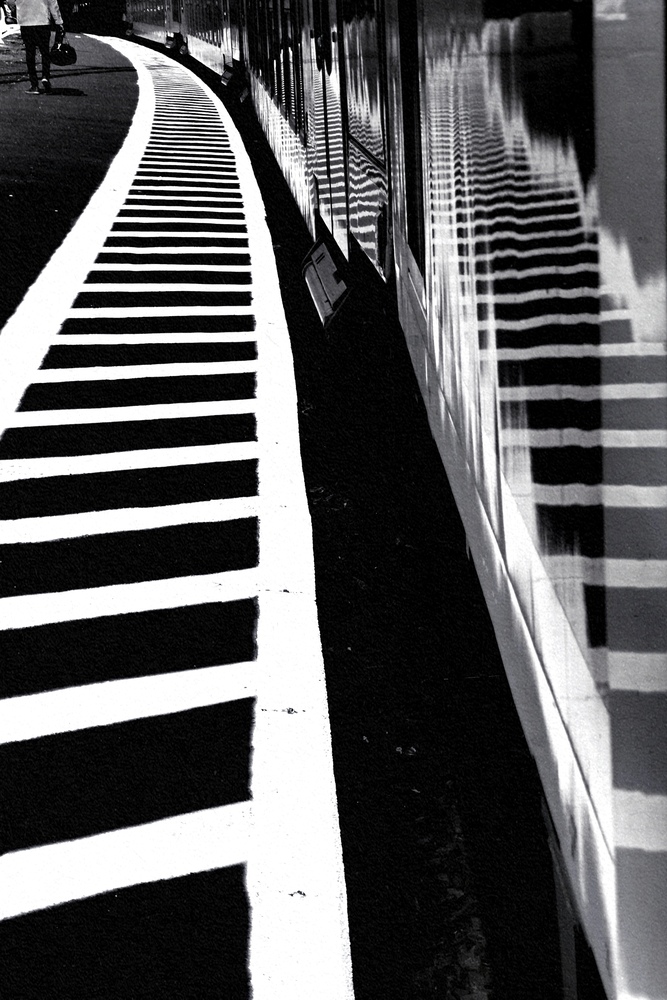 Derzeit ist Abstand in allen Lebenslagen entscheidend, so meint man. Die Perspektive bringt Tiefe und die Kontraste Härte in das Bild.