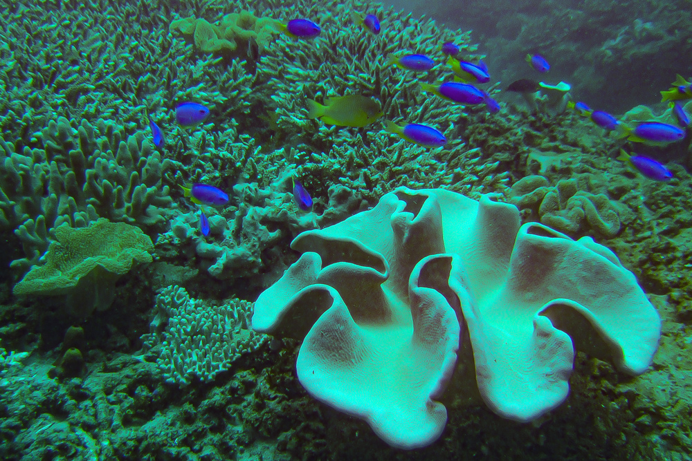 Eine wunderschönes Schauspiel der Natur, wenn unzählige blau Korallenfische zwischen den Korallenbänken tummeln.
