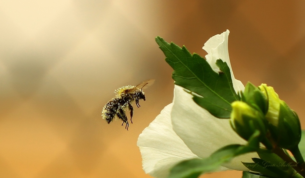 11.08.2013Ein wahrlich wunderschönes Foto, Gerti. Im Flug die Hummel/Biene mit Blütenstaub erwischt. Toll. Dafür einen *