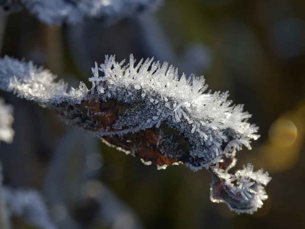„In der Nacht gab es Raureif - éin Blatt im Garten“