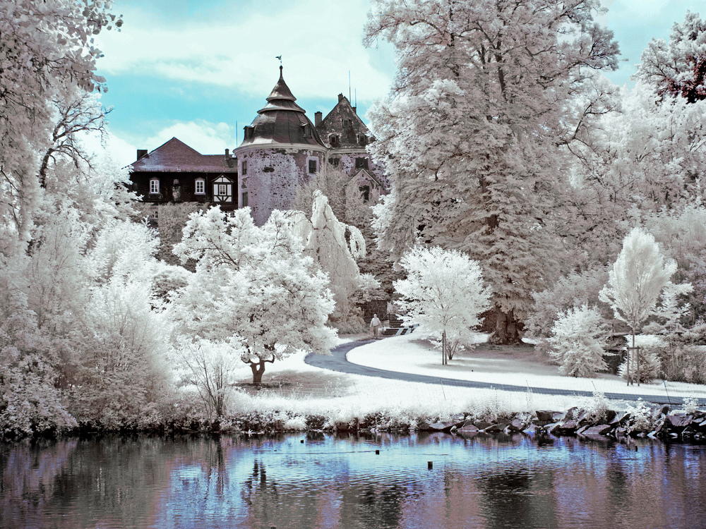 Ein Märchenschloss. Die typischen IR-Merkmale sind sehr gut umgesetzt. Ein schönes Bild ohne Überstrahlungen. {}