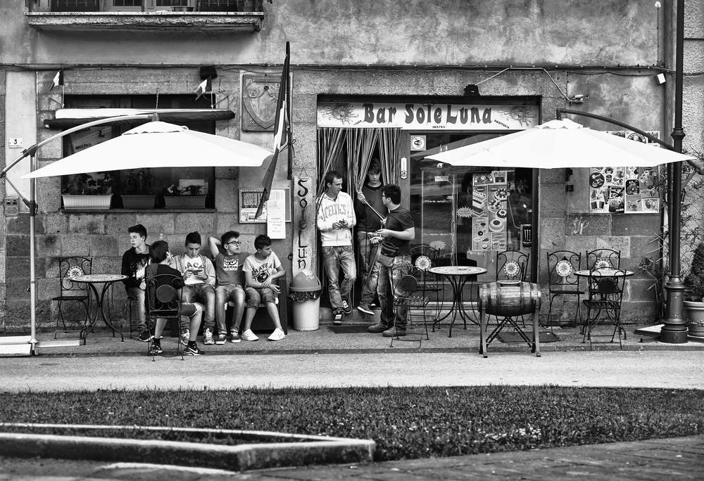Du hast Dir den Bildschnitt sicherlich gut überlegt. Trotzdem äußere ich meinen Beschnitt-Vorschlag: oben den Balkon weg und unten nur einen kleinen Rasenstreifen belassen. Die Kneipenszene ist so unglaublich lebendig (im positiven Sinn), dass sie ungestört von "Randerscheinungen" wirken kann. LG Anke