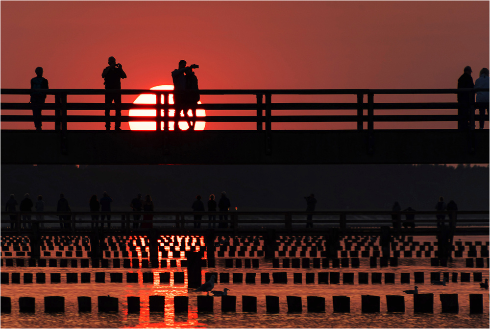 An diesem Bild kann ich nicht achtlos vorbei gehen. Auf mich hat die grafische Wirkung eine große Anziehungskraft. Toll die große Sonne und dern Spiegelung. Einzig da "Rot" behagt mir persönlich nicht uneingeschränkt. Insbesondere im oberen Teil könnte ich mir mehr Transparenz und Differenzierung vorstellen. Vielleicht gibt das das Original her. Aber das ist nun wirklich eine ganz persönliche Wahrnehmung, die nicht als Kritik zu werten ist. BG Chrys