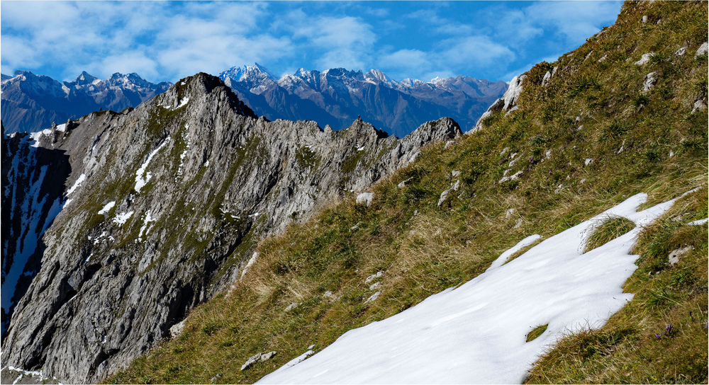 22.03.2021Ich finde toll, wie Du den Schneefleck mit ins Bild genommen hast und insgesamt den Bildaufbau! Dass Die hintere Bergreihe vom Himmel blau eingetönt wird, qualifiziert es zusätzlich zum Tagesthema.