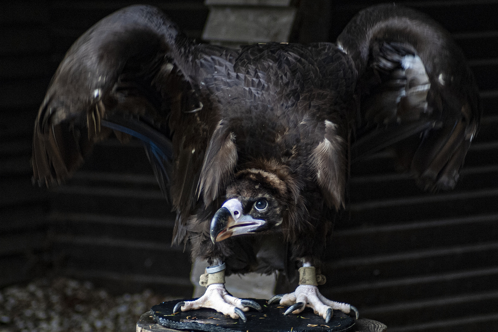 Da möchte aber jemand seine Schwingen ausbreiten und seine Ketten abstreifen! Ganz spannendes Portrait dieses leicht ungemütlich dreinschauenden Greifvogels.
