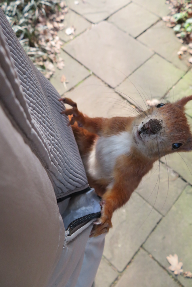 Hallo, ein ganz schön freches Kerlchen das Hörnchen. Mir gefallen Deine Eichhörnchenbilder.