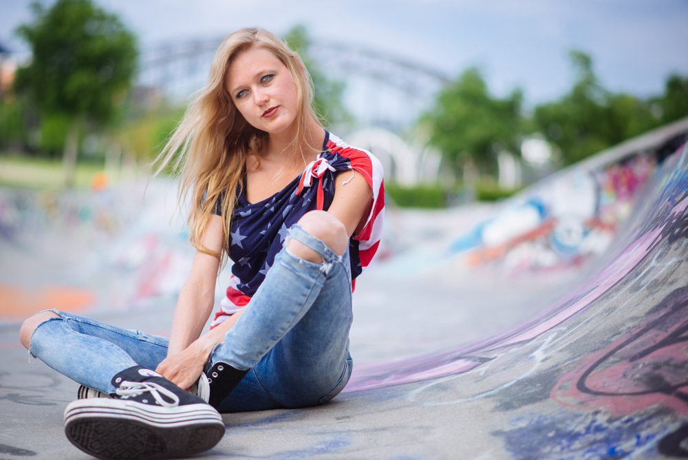 du hast sie schön in ihrem Outfit in die zum Titel passende Umgebung platziert. Diese ist noch gut zu erkennen, aber auch gut freigestellt. Das Skaten selbst hättet ihr beiden vielleicht noch durch ein paar Accessoires unterstreichen können.