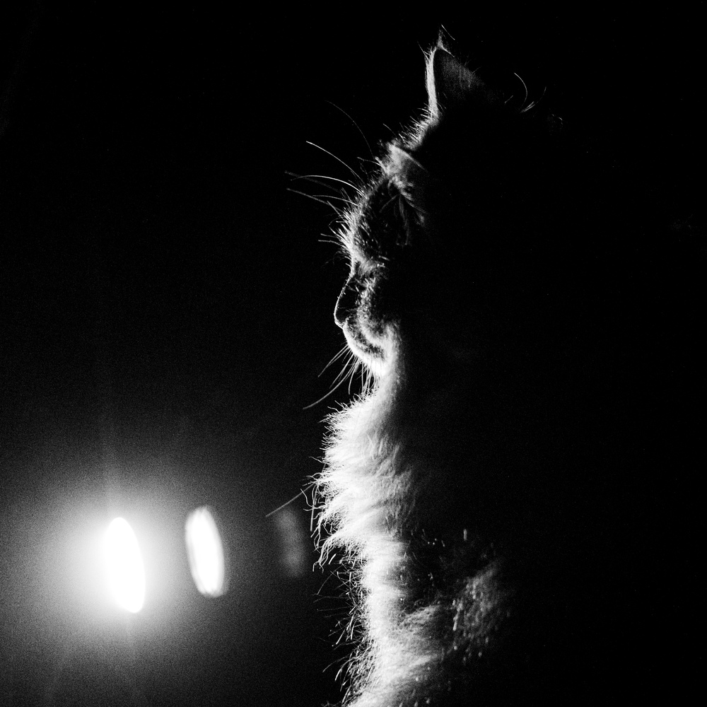 Unsere Nachbarn hatten zwei norwegische Waldkatzen. Nachdem dem Tod von Findus schoss ich dieses Bild von Molly (dessen Schwester) auf unserer Terrasse im Licht der Baumbeleuchtung. In meiner vermenschlichten Sicht glaube ich Trauer und Nachdenklichkeit in ihren Zügen zu sehen.