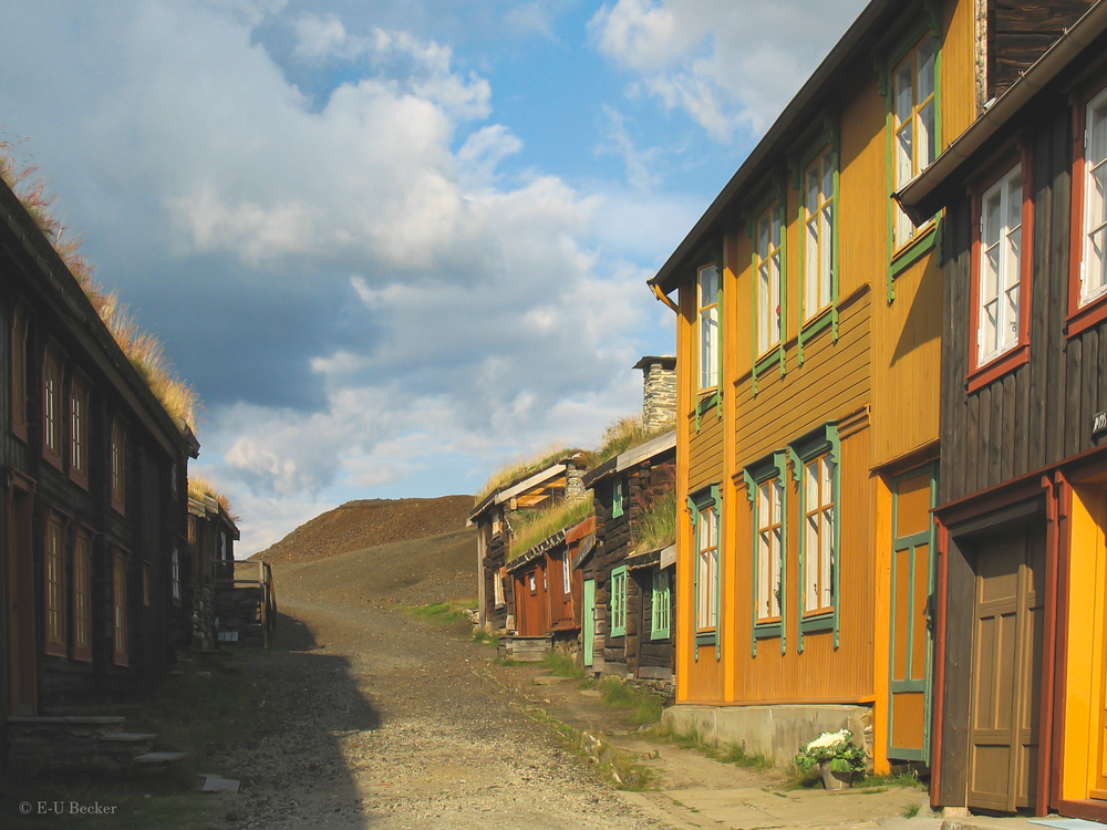 Um den grauen Alltag etwas aufzuheitern und vom schlechten Wetter abzulenken habe ich meinen Bestand durchforstet und ein Foto der Grubenstadt Røros/Norwegen hervorgekramt. Auf der rechten Seite findet man direkt hinter den Schlackenbergen das Armenhaus. Zum Verständnis, es handelt sich nicht um das farbige Haus im Vordergrund, sondern das Holzfarbene direkt hinter der Halde!