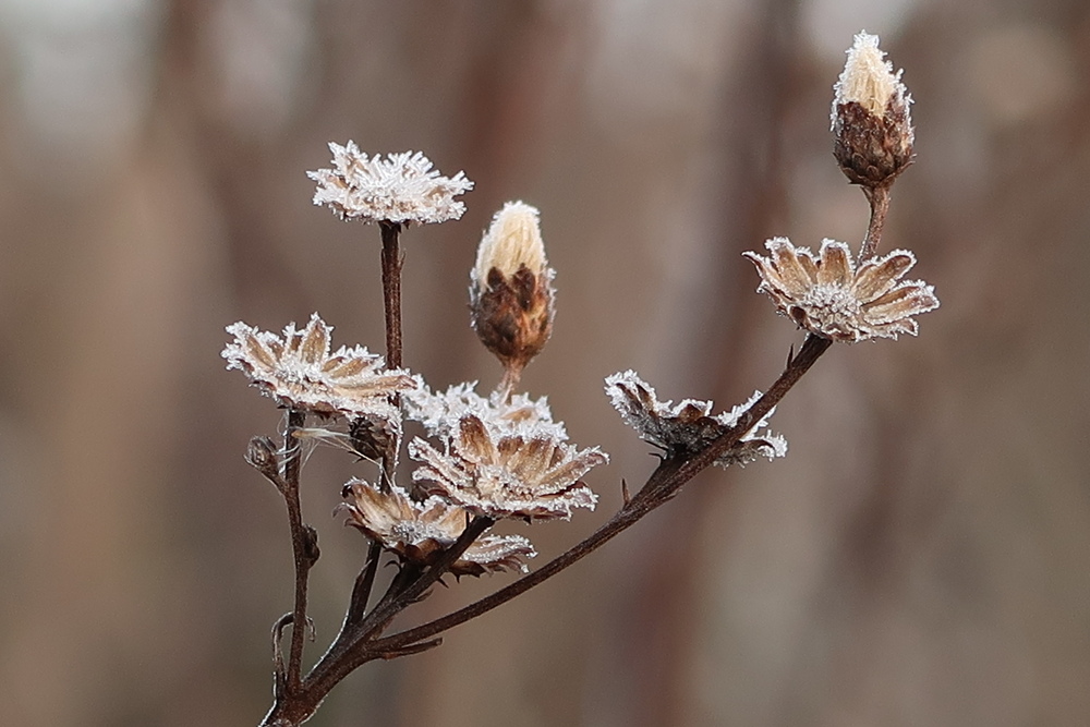 19.01.2023Wie schön verziert die Blüten durch den Frost sind. Und auch der Hintergrund passt in der Farbe wunderbar dazu.
