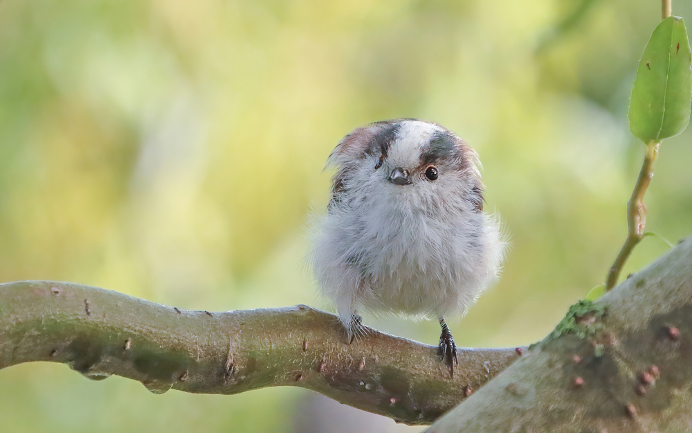 Das scheint noch eine sehr junge Schwanzmeise zu sein. Aber die Artgenossen dürften nicht weit entfernt sein, denn sie fliegen ja gewöhnlich mit der Großfamilie ein. Eine gelungene Aufnahme des kleinen Federballs.