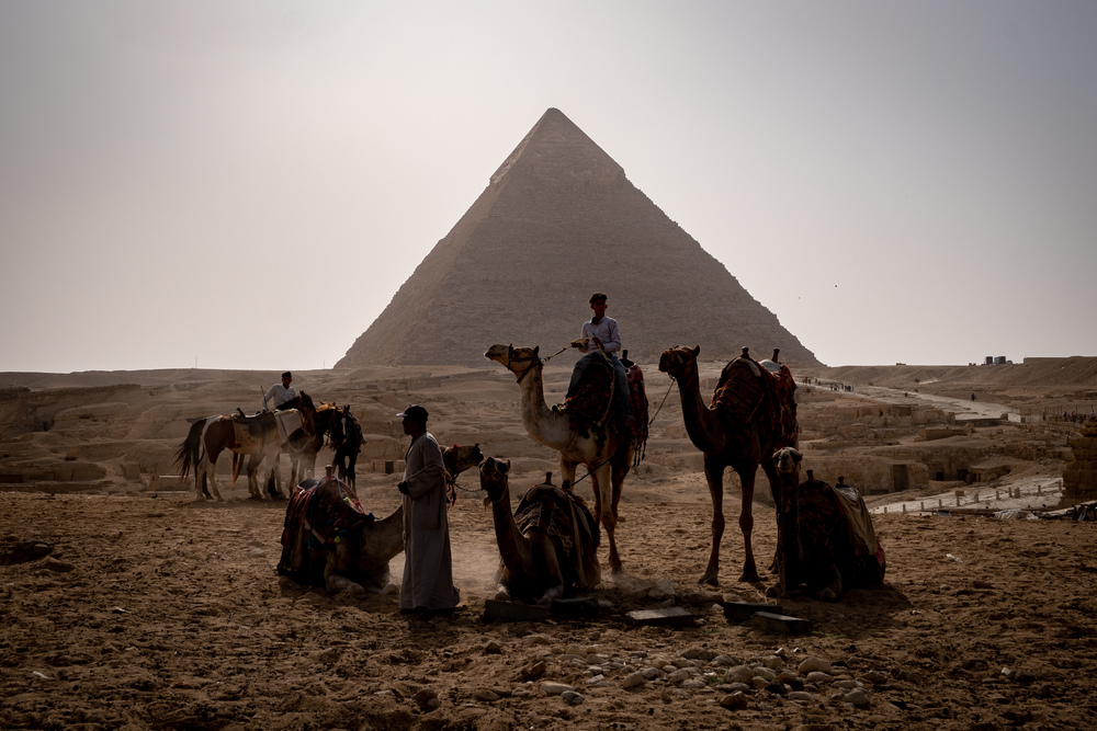 Dieses Bild ist am späten Nachmittag in der Nähe der Pyramiden von Gizeh entstanden als sich die Kameltreiber und Pferdebesitzer für den Feierabend versammelten.