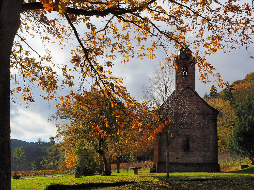 20.11.2023Der herbstlich beblätterte Baum rahmt die kleine, romantische Kapelle sehr schön ein. Wäre der kleine Baum nicht blattlos schon, würde er sie zu sehr verdecken. Aber so sieht man noch genug und es ist stimmig.