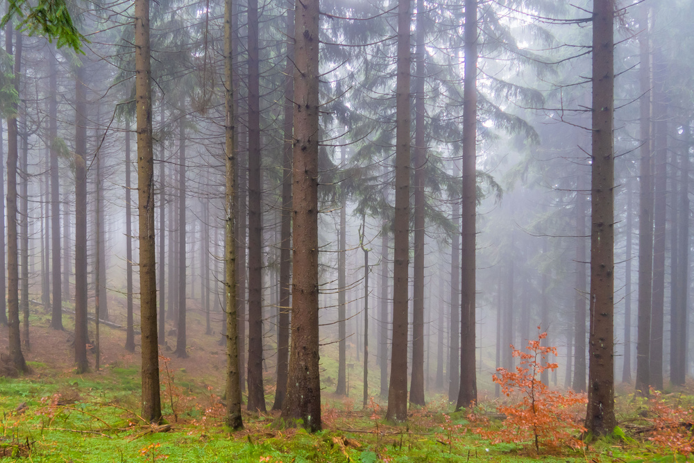 Wunderschöne Naturaufnahme, bei der mir insbesondere die kleine Buche als Kontrast zu den hohen Tannen gefällt ... und der Nebel hüllt alles ein. VG Krystina